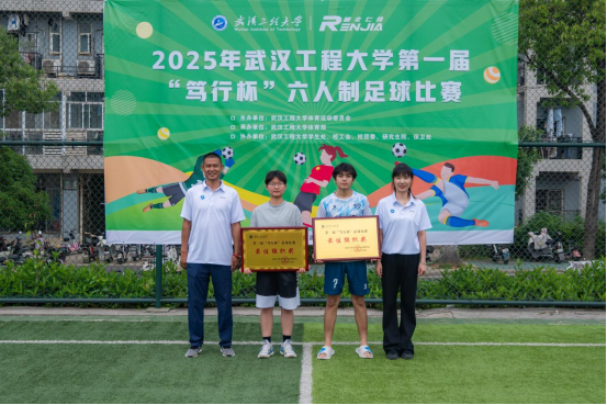 闭幕式上,mksport体育副主任贺新家、主任助理吴雪与仲裁委员会主任李浩智共同为获奖选手颁奖。贺新家教授在总结讲话中充分肯定赛事成果,并宣布首届“笃行杯”足球赛圆满落幕。