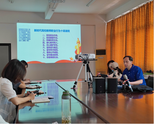 会上,直属党支部书记江本武采取多种形式引导mksport体育全体教职员工全面理解和准确把握政策法规,做到人人应知应做、必知必做,真正把教书育人和自我修养结合起来,时刻自重、自省、自警、自励,自觉做以德立身、以德立学、以德施教、以德育德的楷模,维护教师职业形象,提振师道尊严。