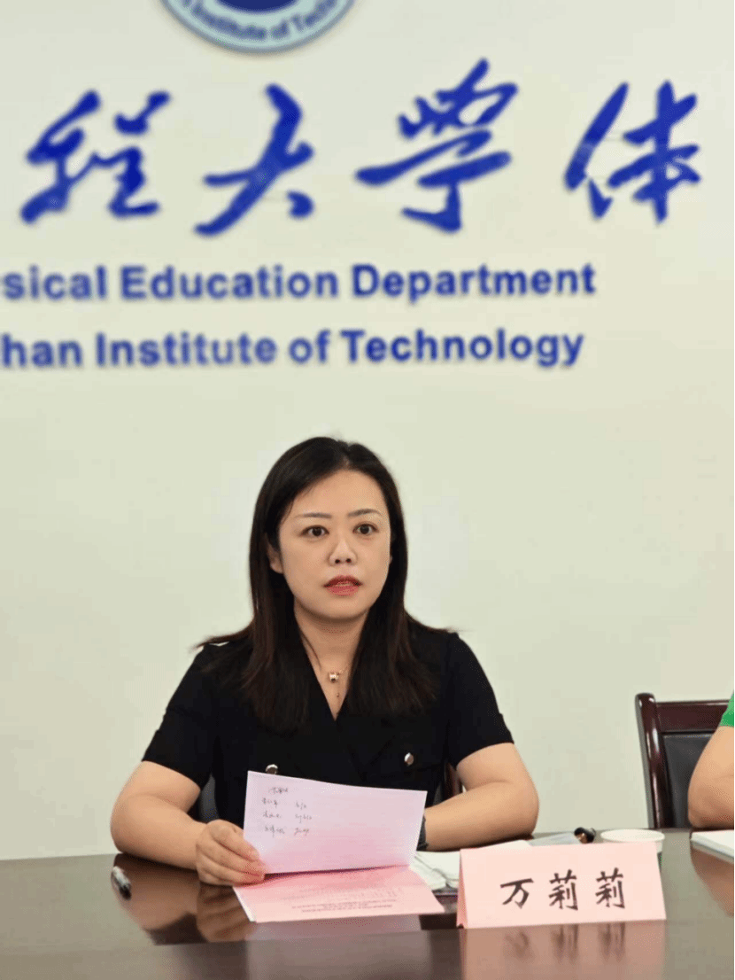 万莉莉致欢迎辞,对兄弟院校的到访表示热烈欢迎,并向来访人员介绍了参会人员、mksport体育基本情况以及党建、教学、体质健康测试、场馆、研究生招生方面工作情况。