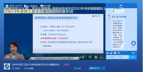 在宣讲过程中,考生们热情洋溢、参与积极,纷纷在聊天弹幕框就相关问题留言,范主任在直播中针对考生普遍关注的疑问进行了一一解答和互动,为考生解疑答惑。本次网络直播观看人次达4725次。