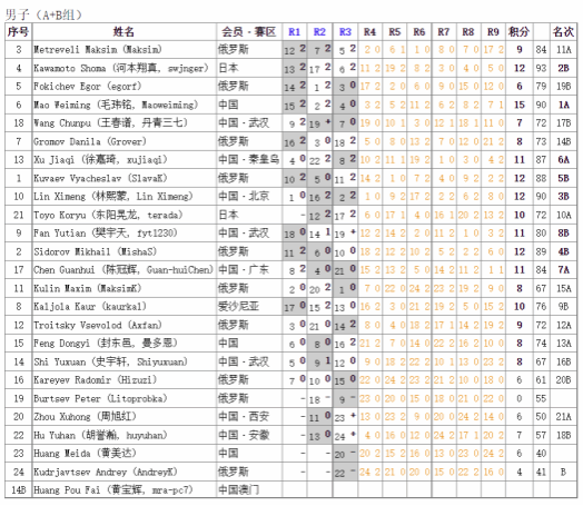 樊宇天 | A+B组第八名,B组第五名 | A+B组第七名,B组第四名 |