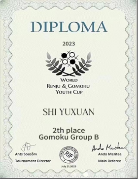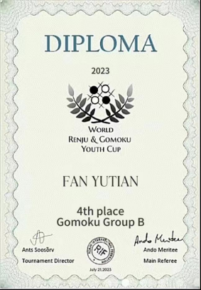 本网讯(通讯员 乐建军)由国际连珠联盟和爱沙尼亚连珠协会主办的第4届世界五子棋青少年杯赛于2023年7月15-22日线上举行,由爱莎尼亚连珠协会进行全程监控。
