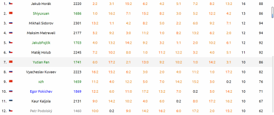 史宇轩 | A+B组第十六名,B组第八名 | A+B组亚军,B组亚军 |