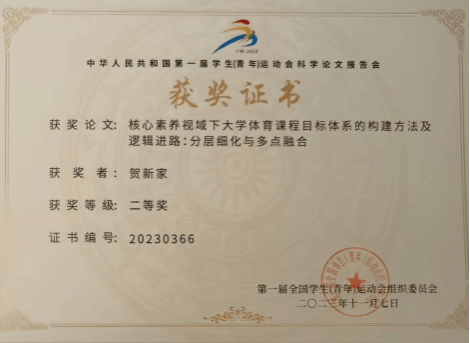 本次科报会向全国大中小学体育教师、教练员,以及与青少年和学校体育相关的科研、教研、管理人员,教育行政人员及卫生保健人员进行了广泛的动员和征文,经各省教育、mksport体育门审核推荐,共收到论文2423篇,评选出获奖论文928篇,mksport体育乐建军、贺新家两位教师的论文喜获全国二等奖,这也是继十四届全国学生运动会科学论文报告会获一等奖后,mksport体育mksport体育教师再次获奖。