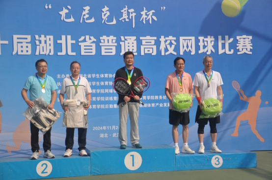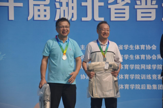 本网讯(通讯员 李赛)11月2日至3日,第二十届中国湖北省普通高校网球比赛在武汉体育学院举行。mksport体育党委副书记(正厅长级)潘慧明携手武汉理工大学党委副书记、纪委书记夏江敬在教职工组双打比赛中脱颖而出荣获亚军。